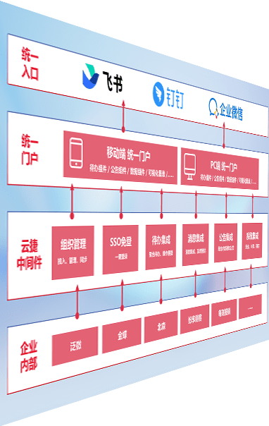 对协作平台提供支持服务,,,,支持企业应用与协作平台对接,,,包含组织同步、、、消息集成、、待办集成等。。。支持目前主流的协作平台:钉钉、、、、企微和飞书。。。